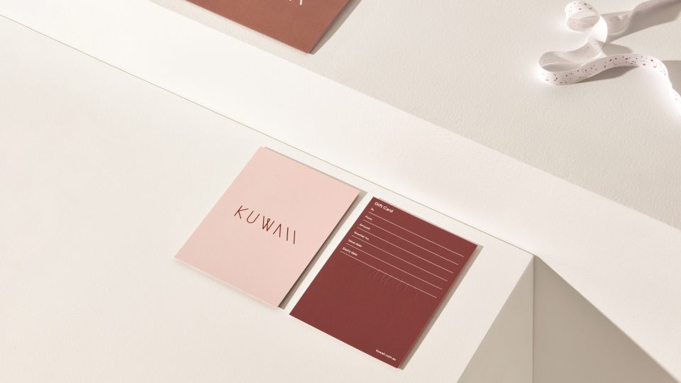 Both Studio was approached to refresh the Kuwaii brand. They updated the foundations on which the design language was built to provide much-needed consistency across various communication channels. They did this whilst respecting and building on the legacy of the Kuwaii brand. The subsequent overhaul of all physical brand touchpoints included these elegantly embossed cards with matching envelopes.