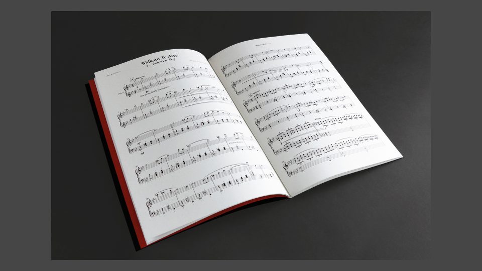 This book, a collection of scores by Waikato-based composers, pays homage to the grand piano by using black stock for the cover (printed in white & gold), red stock fly pages, and multiple white stocks for the internal pages. Each score includes a QR code linking to an audio recording of the piece. These QR codes are positioned at the beginning of the text – a tribute to Renaissance drop caps and the music of the fifteenth-century composers. Although printed on a modest budget, Gravitas Media pushed the boundaries of digital print, creating a premium result, as evidenced by the book winning Gold in the 2024 Pride in Print Awards.