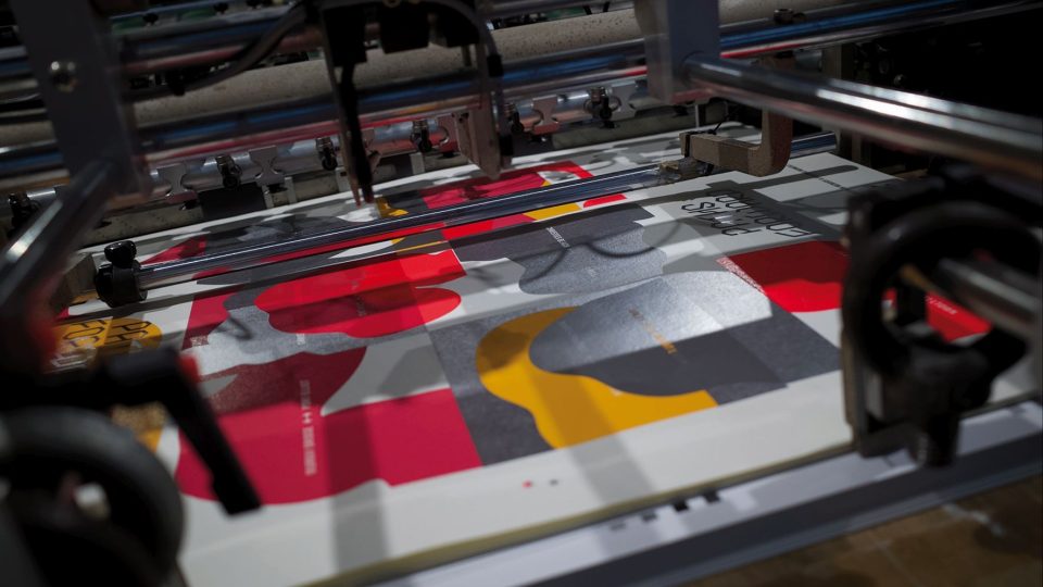 <strong>PRINT SPEC:</strong> Screen printed in four PMS colours + Gloss UV Varnis